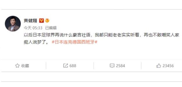 黃健翔不敢再嘲笑日本隊